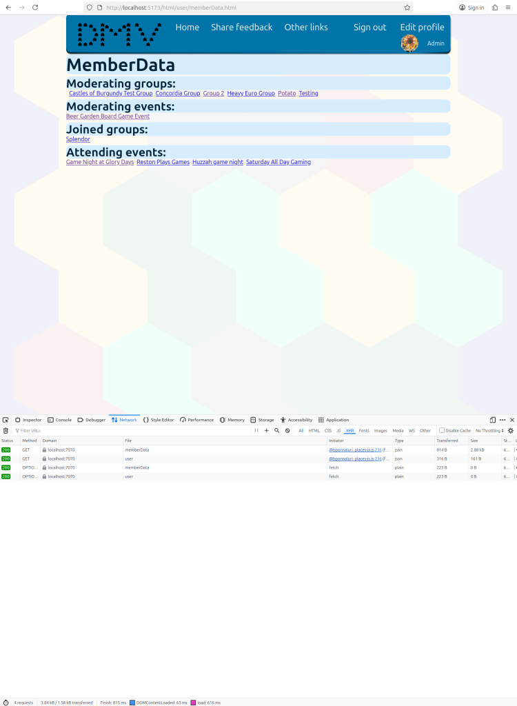 I’m working on adding functionality to dmvboardgames.com which will allow users to join groups and see information about the groups they are a part of. After implementing backend logic as described in my previous post, I worked on end-to-end testing with the UI.