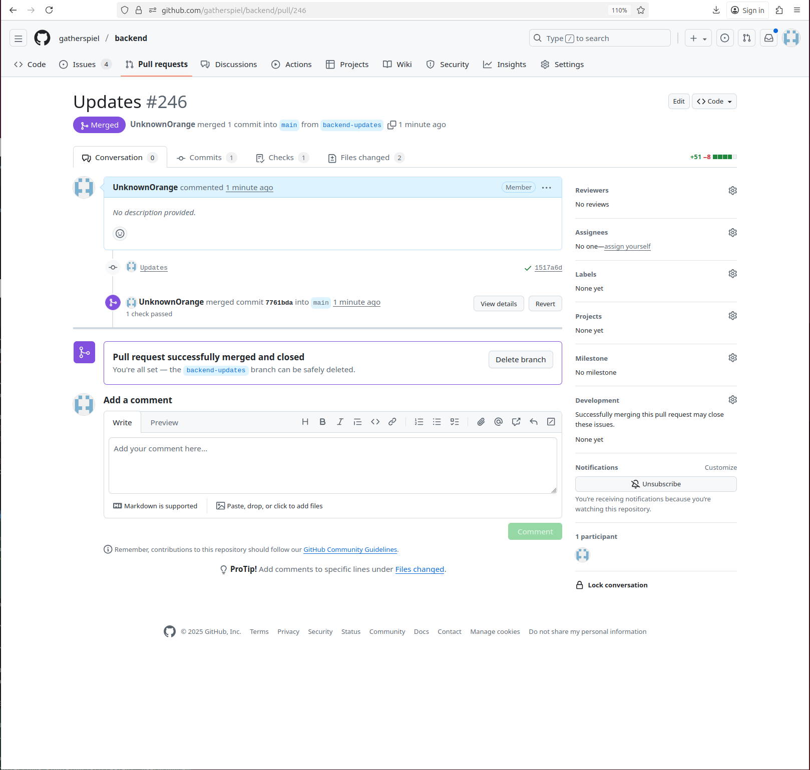 The code changes are here: https://github.com/gatherspiel/backend/pull/243. The next step will be adding API endpoints, creating a UI, and then testing end-to-end